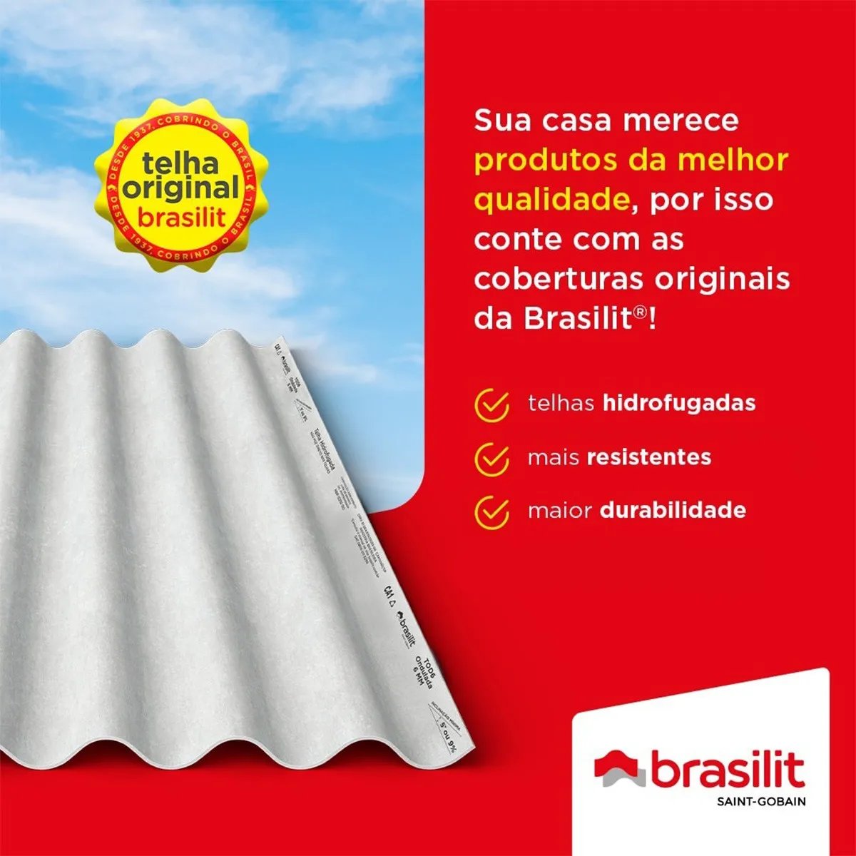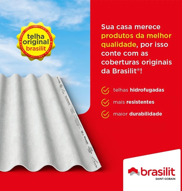 A Brasilit é líder brasileira em telhados, cobrindo todo o Brasil há mais de 80 anos. Parte do Grupo Saint-Gobain, com 360 anos de história de inovação e impacto global, a Brasilit carrega o compromisso de transformar a construção civil com soluções que unem tecnologia, sustentabilidade e qualidade.